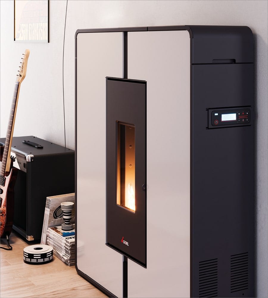 Tile Plus is dankzij zijn diepte van 27 centimeter het antwoord voor wie op zoek is naar een krachtige en elegante kachel voor een kleine ruimte. Veelzijdig, rookafvoer aan de boven-, achter- en zijkant mogelijk.