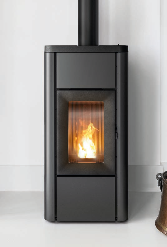 Met een vermogen van 6 kW is de eenvoudige Ghea geschikt voor kleine ruimtes. De deur, de bovenzijde en het interieur zijn vervaardigd uit gietijzer, de zijkanten uit plaatstaal.
